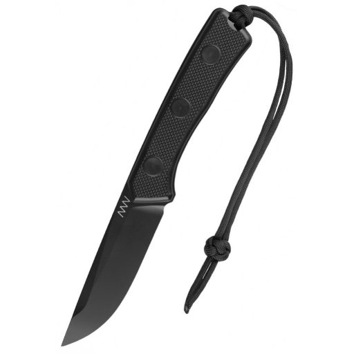 ANV Knives P200 G-10 AllBlack túlélőkés gyári adatai pontos képet adnak a felépítésről. A teljes hossz 220 mm, ebből a penge 100 mm hosszú és 3,5 mm vastag. Anyaga Sleipner acél, amelyet 58 HRC keménységre edzettek, így megfelelő egyensúlyt biztosít az éltartás és a szívósság között. Ez az acél jól bírja a mechanikai igénybevételt, miközben tartós élteljesítményt nyújt. A penge kőmosott felületkezelést kapott, amely egyszerre ad visszafogott megjelenést és csökkenti a karcolások láthatóságát. A markolat fekete G10 kompozit, amely hő- és vegyszerállóságáról ismert, valamint biztos fogást kínál. A kés súlya 156 gramm, amely kiegyensúlyozott arányban oszlik el a penge és a markolat között. A fixpengés szerkezetnek köszönhetően a kés nagyobb terhelést is elvisel, hiszen nem tartalmaz gyenge pontokat, mint a zsebkés mechanikai elemei.