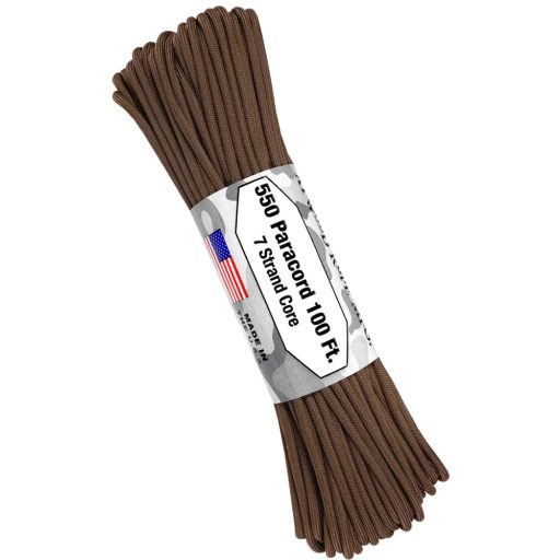 ATWOOD ROPE 550 Paracord Brown - Barna kiváló minőségű, megbízható és erős. A II. Világháborútól kezdve bizonyított teljesítménye van. Megérdemelten szerzett magának hírnevet a Föld egyik leguniverzálisabb kötele címének, melyet kialakításának és minőségi anyagok felhasználásának köszönhetően érdemelte ki. EDC felszerelésünk mondhatni kötelező darabja.