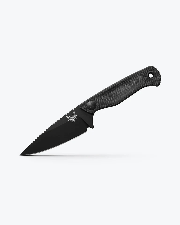 A gyártói adatok szerint a teljes hossz 192 mm, a penge hossza 90 mm, a penge vastagsága 3,0 mm, a kés tömege pedig 96 g. Az acél anyaga CPM MagnaCut, jellemző keménységi tartománya 60–62 HRC, amely magas él-tartást és jó ellenállóképességet ad. A markolat anyaga canvas Micarta, amely mechanikailag ellenálló, mégis kellemes tapintású. A penge felülete Cerakote bevonatot kapott, amely a külső hatásokkal szemben nyújt extra védelmet. A tok rendszerint moduláris kydex vagy bőr-kydex kombináció, amely övre, felszerelésre vagy vízszintes „scout carry” hordásra is alkalmas. A kés gyártási helye az Egyesült Államok, Benchmade minőségben.