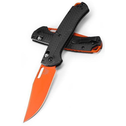 BENCHMADE Taggedout kialakítása rendkívűl praktikus. Egykezes nyitómechanizmusa, átszerelhető klipsze garantálja a kétkezes felhasználhatóságot rikító narancssárga markolata pedig elég feltünő ahhoz, hogy elveszíthessük a vadonban.