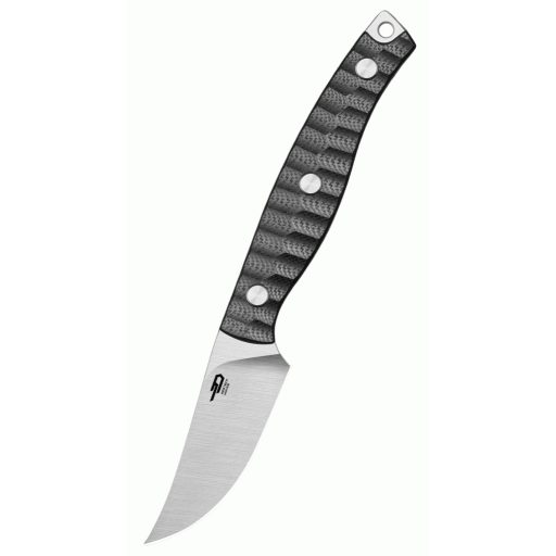 A Bestech Heidi Blacksmith #3 (BFK08A) modell teljes hossza 154 mm, a penge hossza 59 mm, vastagsága 2,5 mm, a kés tömege pedig mindössze 43 gramm. Ez a méretarány ideálissá teszi a mindennapi, könnyed hordásra, miközben a konstrukció mégis kellően erős. A penge 14C28N rozsdamentes acélból készült, amely magas keménységet és jó éltartást kínál, egyensúlyban a könnyű újraélezhetőséggel. A felület satin finish, vagyis selyemfényű polírozás, amely csökkenti a karcolások láthatóságát, és elegáns megjelenést biztosít. A pengeformát trailing point-ként határozza meg a gyártó – ez a kialakítás a hegy felfelé ívelésével precíz, húzó vágásokat tesz lehetővé, és ideális finom munkákhoz vagy kültéri előkészítésekhez. A markolat fekete G10 kompozit, amely üvegszál-erősítésű, préselt laminátum – könnyű, szilárd és kiválóan ellenáll a nedvességnek. A full-tang szerkezet (a penge acélteste végigfut a markolatban) tovább növeli az erőt és a stabilitást, miközben a kydex tok biztonságosan tartja a kést minden helyzetben. Ez a precízen megmunkált fixpengés konstrukció egyszerre szolgálja a tartósságot, a funkcionalitást és az esztétikumot.