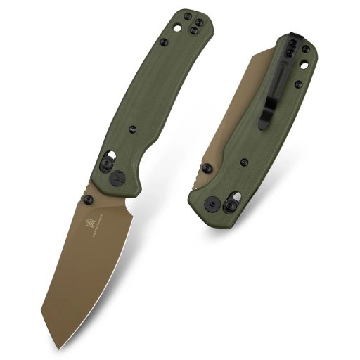 A markolat OD zöld G10 anyagból készült, amely könnyű, mégis rendkívül tartós és ellenálló a környezeti hatásokkal szemben. A 103 mm hosszúságú markolat ergonomikus kialakítása biztosítja a kényelmes és biztos fogást, akár hosszabb használat során is. A G10 anyag textúrája növeli a csúszásmentességet, ami különösen hasznos nedves vagy izzadt kéz esetén.