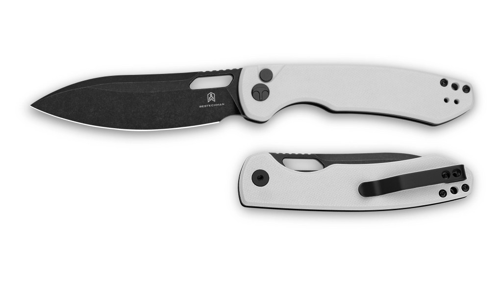 A BMK05E a forgópontjainál gondosan kialakított, egyszerű, mégis jól használható formát képviseli. A penge mindkét oldalán megtalálható a nyithatóságot biztosító kivágás, a zármechanizmus pedig gombzár (button lock) típusú — így a használat gyors és biztonságos. A markolat az ismert G10 laminátumból készült, fehér kivitelben, amely erős fogást és tartósságot kínál még akkor is, ha a kéz nedves vagy hideg. A zsebklip mélyen hordható kivitelű, ambidex-barát (jobb- és balkezes viseléshez egyaránt) kialakítással — ez azt jelenti, hogy a hordás praktikus és zökkenőmentes marad. A pengén alkalmazott felületkezelt bevonat kombinációja a letisztult megjelenést támogatja, ugyanakkor visszafogottan kezeli a használat nyomait is.