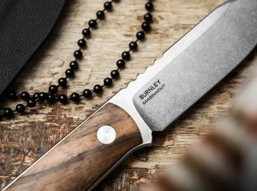 A kés legfontosabb technikai eleme a 6,5 cm hosszú drop-point penge, amely a forradalmi CPM MagnaCut rozsdamentes acélból készült. A MagnaCut jelenleg a késipar „Szent Grálja”, mivel egyedülálló módon kombinálja a kimagasló szívósságot, az extrém korrózióállóságot és a kiváló éltartó képességet, amit a 61–62 HRC közötti keménység is alátámaszt. A penge felülete stílusos stonewash (kőmosott) finish-t kapott, amely nemcsak esztétikus, hanem kiválóan elfedi a használat során keletkező apró karcolásokat is. A 2,5 mm-es pengevastagság és a magasra húzott levezetőél (flat grind) olyan pengegeometriát eredményez, amely ellenállás nélkül hatol át az anyagokon, legyen szó precíziós vágásokról vagy általános EDC feladatokról. A Solingenben végzett professzionális hőkezelés garantálja, hogy a MagnaCut acél minden előnyös tulajdonságát maximálisan kihasználhassuk a mindennapi munka során. Ez az anyagválasztás biztosítja, hogy a kés még zordabb, nedvesebb körülmények között is megőrizze szerkezeti integritását és élességét, minimális karbantartás mellett.