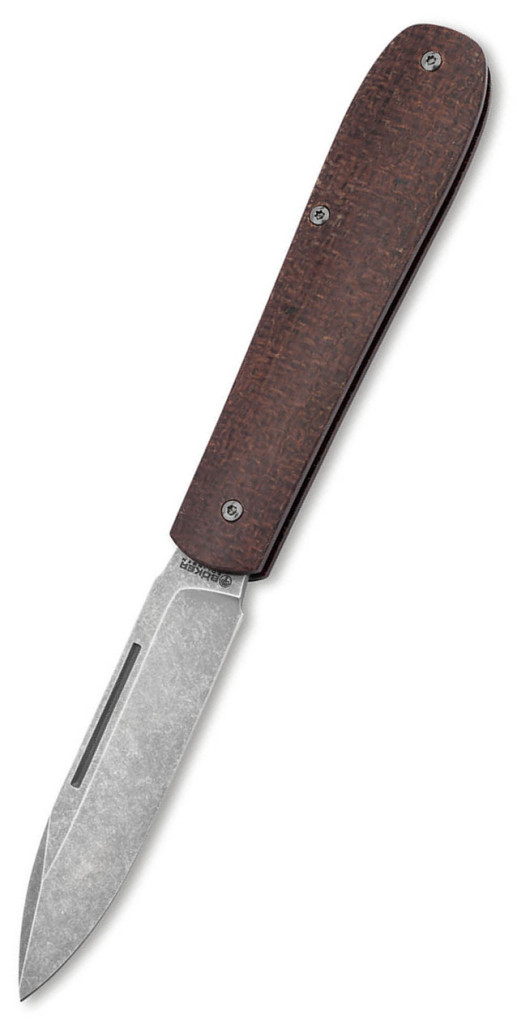 A markolat kialakítása hű marad a névadó koporsó-sziluetthez, amely szélesebb végeivel és elvékonyodó középrészével meglepően kényelmes és stabil fogást biztosít. A markolatpanelek alapanyaga barna Jute Micarta, amely egy rendkívül strapabíró, rétegelt kompozit: a juta szövet és a műgyanta kombinációja nemcsak természetes, meleg tapintást ad, hanem nedves kézzel is biztos tapadást garantál. A bicska a klasszikus Slipjoint mechanizmuson alapul, ahol egy erős hátrúgó tartja nyitott állapotban a pengét, mechanikus zár nélkül. Ez a megoldás a tradicionális bicskák világát idézi, miközben a rugó ereje határozott megállást és biztonságos használatot nyújt a szabályos vágási műveletek közben. A markolat belső szerkezetét rozsdamentes acél linerek merevítik, biztosítva a hosszú élettartamot és a deformációmentes vázat. A kés nem rendelkezik zsebklipsszel, ami lehetővé teszi a rendkívül lapos profilt, így az eszköz észrevétlenül simul a zsebbe, megőrizve a gentleman carry stílus tisztaságát.