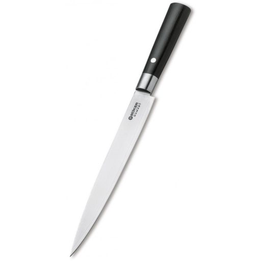 Böker Damascus Black Carving knife hosszú és vékony alakjának köszönhetően ideális hús és hal finom és pontos vágásához, szeleteléséhez.