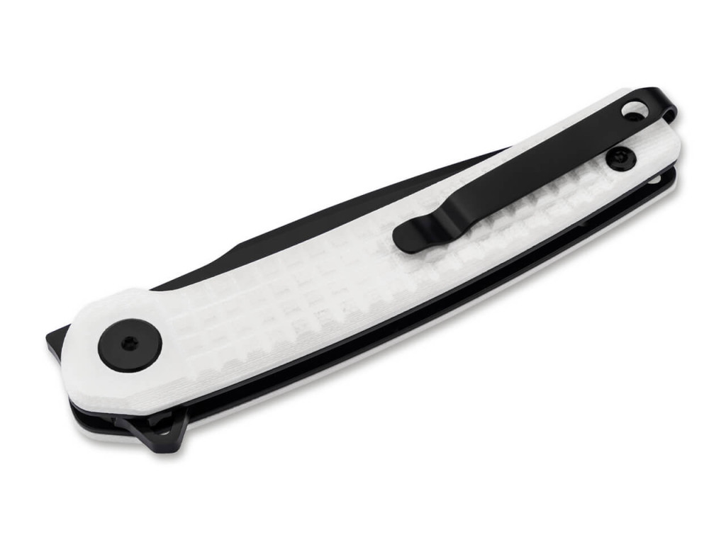 A Böker Magnum Empery markolata fehér G10 (üvegszállal erősített műgyanta kompozit) anyagból készült, amelynek textúrája kiváló tapadást és biztos fogást nyújt minden körülmény között. A markolat ergonómikus kialakítása és a mindössze 83,00 g súly rendkívül kényelmessé teszi a tartós használatot, mivel a kés szinte észrevehetetlen marad a kézben és a zsebben egyaránt. A Böker Magnum Empery hordozhatóságát egy megfordítható, mélyen hordható zsebcsipesz (deep-carry clip - olyan klip, amivel a kés teljesen eltűnik a zsebben) segíti, amely tip-up (hegy-fent állásban történő rögzítés) pozícióban helyezkedik el. A markolat végén található zsinórfurat (lanyard hole - lyuk a biztonsági pánt átfűzéséhez) további rögzítési lehetőséget kínál a felhasználóknak. A precíz ázsiai gyártástechnológia és a Magnum márka minőségellenőrzése biztosítja, hogy a Böker Magnum Empery hosszú távon is megbízható és elegáns eleme legyen a mindennapi felszerelésnek.