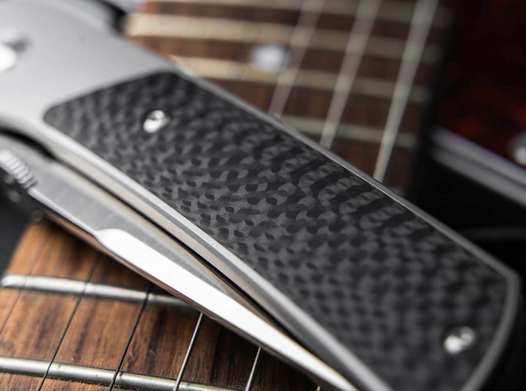 A markolat a high-end anyagok és a funkcionális tervezés mintapéldája: a masszív titán vázra rögzített szénszálas (carbon fiber) betét nemcsak látványos, hanem rendkívül könnyű és ellenálló szerkezetet eredményez. A bicska teljes súlya mindössze 125 gramm, ami a masszív méretekhez képest kiváló hordozhatóságot biztosít a mindennapi viselet során. A zárszerkezet egy robusztus Framelock (keretzár), amelyet edzett acél betéttel láttak el a titán és az acél penge közötti tapadásmentes és kopásálló működés érdekében. Ez a megoldás garantálja a holtjátékmentes rögzítést és a hosszú élettartamot még intenzív használat mellett is, elkerülve a zár véletlen kioldását. Az ergonómia sallangmentes, a markolat ívei természetesen követik a kéz formáját, biztos fogást nyújtva bármilyen szögben végzett munka során a felhasználónak. A bicska hordozhatóságát egy mart titán zsebklipsz teszi teljessé, amely stabil rögzítést biztosít, miközben a tartozékként járó minőségi nylon tok extra védelmet nyújt a tárolás során. Minden egyes alkatrész illesztése és megmunkálása a legmagasabb minőségi elvárásoknak megfelelően készült, elkerülve a mechanikai pontatlanságokat.