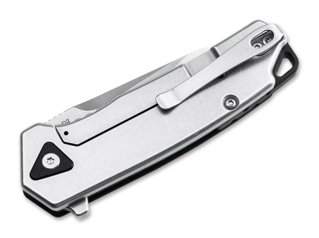 A markolat kialakítása hűen tükrözi Alessandra De Santis háromszögletű elemekre épülő tervezői filozófiáját: a fekete G10 panelek nemcsak rendéül tartósak, hanem a mart textúrának köszönhetően nedves kézzel is biztonságos fogást és kiváló tapadást garantálnak. A bicska szerkezetét egy precízen illesztett Linerlock (keresztzár) teszi teljessé, amely holtjátékmentesen és biztonságosan rögzíti a pengét nyitott állapotban, kizárva a véletlen becsukódás lehetőségét komolyabb terhelés alatt is a használat közben. A zsebkés teljes hossza nyitott állapotban 17,6 cm, súlya pedig 104 gramm, ami ideális arányt teremt a stabil tartás és a kényelmes hordozhatóság között a mindennapi viselet során. A hordozhatóságot egy diszkrét, mélyen ülő zsebklipsz (deep-carry clip) segíti, amely lehetővé teszi a biztonságos rögzítést a ruházaton, biztosítva a gyors elővételt és a feltűnésmentes viselést bármilyen környezetben. Minden egyes illesztés és felületi megmunkálás a Böker Plus szigorú minőségi követelményei szerint készült, garantálva a hosszú élettartamot és a mechanikai pontosságot a zsebkés teljes életciklusa alatt a felhasználók számára.