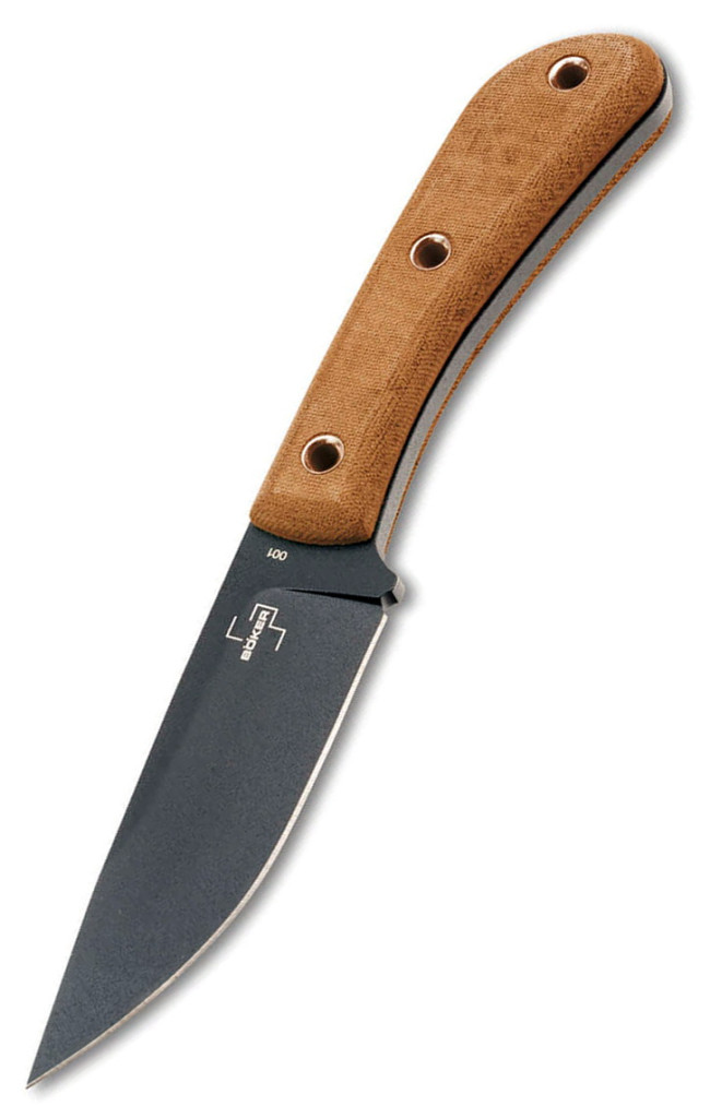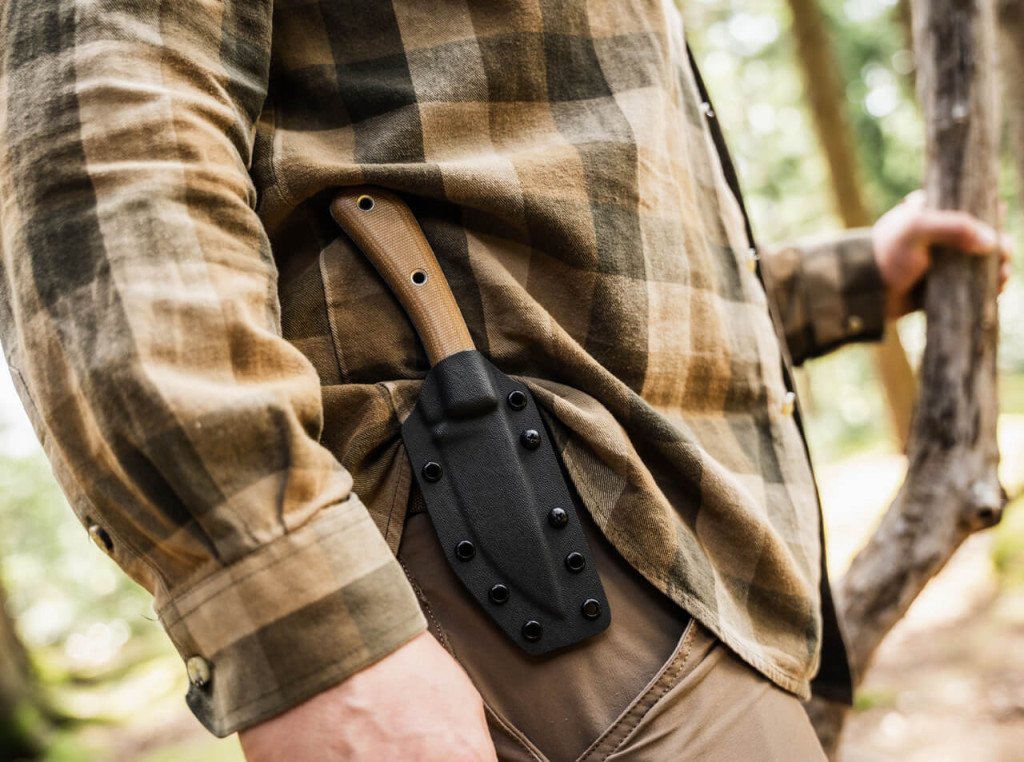 A konstrukció alapja a full-tang felépítés, ahol az acél végigfut a markolat teljes hosszában, elkerülve a szerkezeti gyengeségeket még extrém terhelés alatt is. A barna Micarta markolatpanelek nemcsak esztétikusak, hanem nedves vagy sáros kézzel is tökéletes tapadást és csúszásmentes fogást biztosítanak a felhasználó számára. Az ergonómia James Helm stílusára jellemzően sallangmentes: a markolat formája természetesen követi a kéz vonalait, elkerülve a vízhólyagok kialakulását huzamosabb ideig tartó nehéz munka során is a terepen. A paneleket masszív, üreges szegecsek rögzítik, amelyek egyben zsinórfuratként is funkcionálnak, lehetővé téve a kés egyedi rögzítését vagy csuklószíj használatát. A késhez egy precízen illeszkedő, méretre formázott Kydex tok tartozik övadapterrel, amely többféle hordmódot tesz lehetővé a felszerelésen, garantálva a zajmentes és stabil rögzítést mozgás közben is. Minden egyes illesztés és felületi megmunkálás a Böker Plus szigorú minőségi követelményei szerint készült, biztosítva a zavartalan használatot és a hosszú élettartamot bárhol.