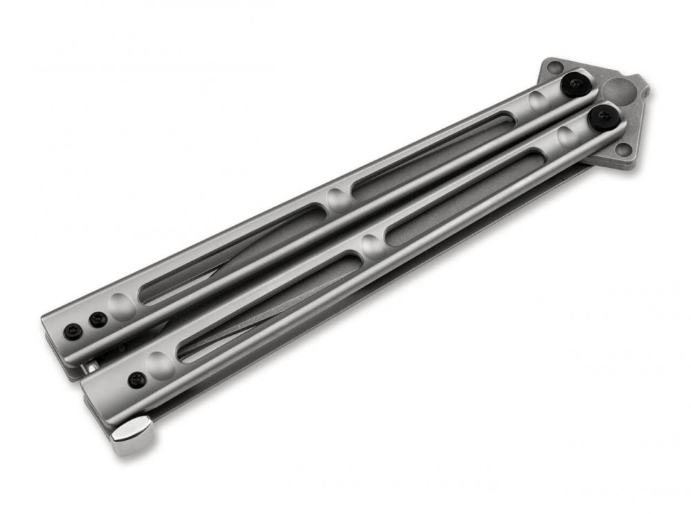 A markolat kialakítása a funkcionalitás és a súlycsökkentés tökéletes egyensúlya: a rozsdamentes acélból készült szárak látványos szkeletonizált (könnyített) szerkezetet kaptak, amely nemcsak esztétikailag lenyűgöző, hanem a kés egyensúlyát is optimalizálja a használat közben. A teljes markolatfelület finom homokfúvott (sandblast) felületkezelést kapott, amely matt megjelenést és csúszásmentes fogást biztosít még nedvesebb tenyérben is a gyakorlás vagy munka során. A kés teljes hossza nyitott állapotban 25,9 cm, súlya pedig mindössze 120 gramm, ami meglepően könnyűvé, gyorssá és jól irányíthatóvá teszi az eszközt a kézben. A szárak rögzítéséért egy klasszikus, de megbízható T-latch zárszerkezet felel, amely stabilan rögzíti a kést mind nyitott, mind zárt állapotban, megakadályozva a véletlen kinyílást vagy becsukódást hordozás közben. Minden egyes alkatrész illesztése és megmunkálása a solingeni gyár legmagasabb minőségi követelményei szerint készült, kizárva a felesleges mechanikai holtjátékot és biztosítva a hosszú távú mechanikai pontosságot a tudatos felhasználók számára a mindennapok során.
