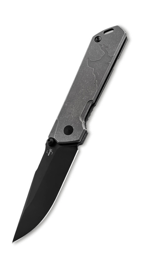 Ez a modell drop point pengeformával rendelkezik, ami egy stabil és sokoldalú kialakítás, különösen jól alkalmazható mindennapi feladatokra vagy precíz vágási munkákra egyaránt. A penge CPM-S35VN acélból készült, amely az egyik legjobb porvasasított acélminőség: kiváló él-tartást, korrózió-ellenállást és mechanikai szilárdságot kínál. A penge felületét fekete PVD-bevonat fedi, ami diszkrét, taktikai megjelenést biztosít, és segít csökkenteni a fényvisszaverődést. A titanium markolat stonewash felülettel érkezik, amely nem csak esztétikus, hanem tartós és kényelmes fogást is ad, még nedves körülmények között is.