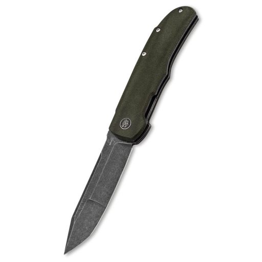 A markolat kialakítása a funkcionalitás és az esztétika tökéletes egyensúlya: az olívazöld Micarta panelek nemcsak rendkívül tartósak és könnyűek, hanem nedves vagy sáros körülmények között is biztos, csúszásmentes fogást garantálnak minden körülmény között. Az ergonómia Bob Terzuola évtizedes tervezői filozófiáját tükrözi, ahol a markolat ívei természetesen követik a kéz formáját, elkerülve a „hot spotokat” a huzamosabb használat során a terepen. A szerkezet alapja egy stabil Linerlock (keresztzár), amely holtjátékmentesen és biztonságosan rögzíti a pengét nyitott állapotban, kizárva a véletlen becsukódás lehetőségét komolyabb terhelés alatt is. Vizuális és technikai fókuszpont a markolaton elhelyezett rejtett tengelycsavar, amelyet a híres Terzuola-logo, a sárkányfej díszít, hangsúlyozva a modell exkluzivitását. A hordozhatóságot egy diszkrét zsebklipsz teszi teljessé, a mellékelt minőségi nylon tok pedig extra védelmet nyújt a tárolás és szállítás során, biztosítva az eszköz hosszú élettartamát és megóvva az anyagokat a sérülésektől. Minden egyes alkatrész illesztése és megmunkálása a legmagasabb minőségi elvárásoknak megfelelően készült.