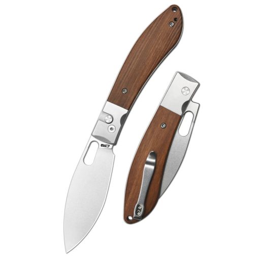 A penge drop point kialakítású, amely kiegyensúlyozott hegyformát és sokoldalú vágási tulajdonságokat biztosít, így alkalmas precíz munkákhoz és általános felhasználáshoz is. Az AR-RPM9 acél kimagasló kopásállóságot és korrózióvédelmet nyújt. A felületkezelés stonewash (koptatott matt), amely esztétikusan elrejti a használat közbeni karcolásokat, és csökkenti a fényvisszaverődést. A penge flat grind köszörülést kapott, ami azt jelenti, hogy a penge lapjai a gerinctől az él felé egyenletesen, síkban szűkülnek — ez pontos, tiszta vágást biztosít, és könnyen élezhető. A nyitást thumb stud (hüvelykujjas nyitóbütyök) segíti, a zárást button lock (gombzár) mechanizmus biztosítja. A markolat fa markolat, amely kellemes tapintású és jó tapadást nyújt. A deep carry (mélyre süllyesztett) csíptető diszkrét hordhatóságot tesz lehetővé.
