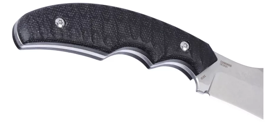 A CRKT Burrower tervezésekor a legfontosabb szempont a maximális kontroll és a biztonságos használat volt, ezért a markolatpanelekhez burlap Micarta anyagot választottak (textilszálakból és műgyantából préselt, rendkívül ellenálló kompozit anyag). Ez az anyag természetes, érdes textúrájának köszönhetően még nedves, saras vagy csúszós körülmények között is stabil tapadást és magabiztos fogást biztosít a felhasználó számára. A CRKT Burrower szerkezete full-tang felépítésű, ami azt jelenti, hogy a pengét alkotó acéllemez a markolat teljes hosszában és szélességében végigfut, így garantálva a szerkezeti integritást és a gyakorlatilag törhetetlen tartósságot a legnehezebb körülmények között is. A markolaton elhelyezett kettős ujjmélyedés (a markolat elején kialakított speciális anatómiai ívek az ujjak számára) hatékonyan megakadályozza a kéz véletlen előrecsúszását a vágóélre, ezzel jelentősen növelve a biztonságot intenzív munkavégzés közben. A CRKT Burrower minden apró részlete a valódi, terepen szerzett tapasztalatok alapján lett kalibrálva, hogy a funkcionalitás és a kényelem ne zárják ki egymást.