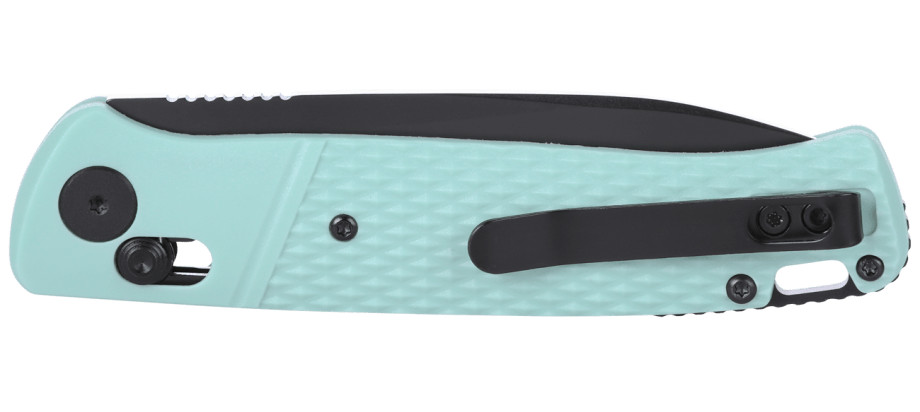 A markolat megtervezésekor a legfőbb szempont a tömegcsökkentés és a tartósság volt, ezért a választás az üvegszál-erősítésű nylon (GRN) alapanyagra esett. Ez egy modern kompozit anyag (műanyag polimer és üvegszálak nagy nyomáson létrehozott elegye), amely rendkívül strapabíró, ellenáll a nedvességnek és a szélsőséges hőmérsékleti ingadozásoknak. Az ergonómikus kialakítás és a finoman texturált felület garantálja a biztonságos fogást, elkerülve a kéz véletlen elcsúszását munka közben. A zsebkés zárt állapotban mért hossza mindössze 112 mm, ami a kompakt méretével lehetővé teszi a kényelmes hordozhatóságot bármilyen ruházatban. A felhasználói élményt az állítható zsebklipsz teszi teljessé, amely támogatja a hegy-felfelé (tip-up) történő viseletet a zseb peremén. Mivel a rögzítőelem mindkét oldalra felszerelhető, a szerszám teljes mértékben támogatja a kétkezes használatot, így a balkezesek számára is ugyanolyan kényelmes és funkcionális marad.