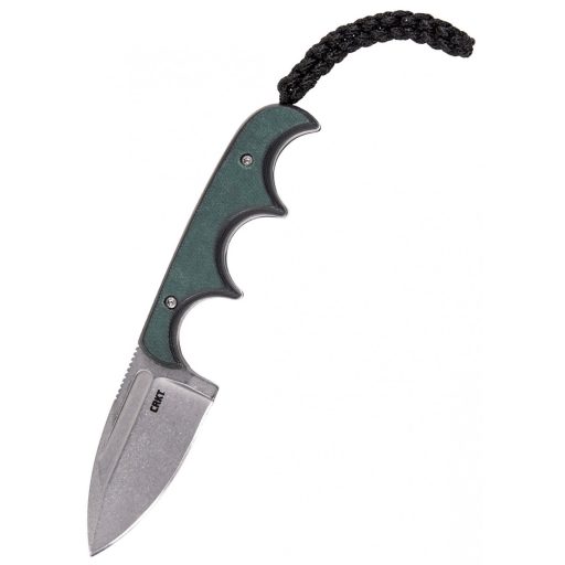 Íme egy nagyon kicsi és könnyű kés ami ugyanakkor meglepően kényelmes és kezelhető köszönhetően az 5 cm hosszú full-tang spear-point szokatlan geometriájának amely kiegészül három ujjvédővel a kéz kontúrját követő zöld/fekete Micarta® burkolattal és fonott késdísszel.