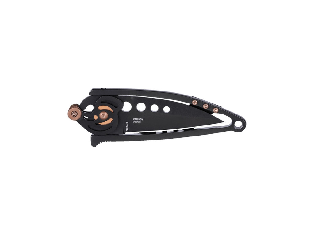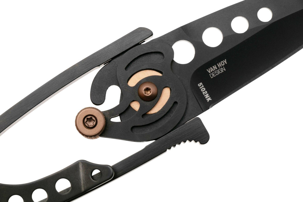 A CRKT Snap Lock 5102NK teljes hossza 158,75 mm, zárt állapotban 106,86 mm, a penge hossza 64,87 mm, vastagsága 3,15 mm. A penge 420J2 rozsdamentes acélból készült, amely közepes széntartalommal rendelkezik, így jó éltartást biztosít és könnyen fenhető. A Titán-Nitrid bevonat növeli a kopás- és korrózióállóságot, miközben a fekete felület elegáns megjelenést kölcsönöz. A penge Wharncliffe kialakítású, amelynél a penge gerince fokozatosan lejt a hegy felé, ezáltal precíz és erős vágásokat tesz lehetővé. A markolat fekete rozsdamentes acél, belső merevítéssel, biztosítva a stabil és ergonomikus fogást. A Snap Lock zár mechanizmus biztonságosan tartja a pengét nyitott állapotban, míg a reverzibilis zsebklip a bal- és jobbkezes hordozást egyaránt lehetővé teszi. A kés súlya 70,87 g, gyártása Kínában történt, tervezője Ed Van Hoy.