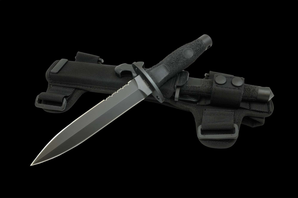 A markolat ergonomikus kialakítású alumínium, amely rendkívül tartós, miközben kényelmes és stabil fogást biztosít akár extrém körülmények között is. A markolat végén található üvegtörő további funkcionalitást ad a késhez. A tőr Cordura tokban érkezik, amely M.O.L.L.E. kompatibilis, így könnyen rögzíthető katonai felszerelésekhez, övhöz vagy mellényhez.