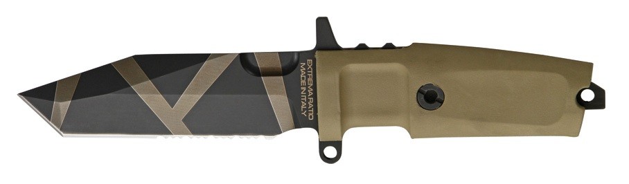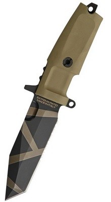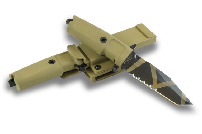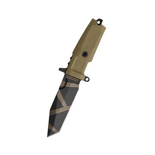 Az EXTREMA RATIO Fulcrum C Desert Warfare kés pengéje N690 kobalt-tartalmú rozsdamentes acélból készült, ami egy kiváló minőségű acél, kiváló vágó és élezési tulajdonságokkal. A penge sima köszörülésű, keménysége 58 HRC. A Kraton nyél a markolattüskére egy hatszögletű rozsdamentes csavarral van rögzítve, ami hatékony tisztítást és kenést tesz lehetővé, így a kés élettartama korlátlan. A markolat kiváló tapadású polimer anyaga és alakja révén gyorsan válthatunk a normál és a fordított fogás között.