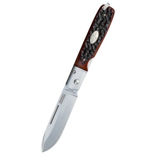 A Gentleman’s Pocket Knife egy hagyományos. sőt. enyhén ódivatú zsebkésnek tűnik. ám ha közelről szemügyre veszed. semmi mást nem fogsz találni. csak modern anyagokat és hi-tech megoldásokat. Amikor néhány profi vadász megnézte a Gp kézzel készített mintadarabját. a spontán reakciójuk az volt. hogy: Így kell kinéznie egy vadászok számára készült bicskának! A személyes véleményünktől függetlenül azt gyanítjuk. hogy sokan kedvelni fogják ennek a valószerűtlenül éles késnek az acélját; az újonnan kifejlesztett kobalttartalmú laminált acélunkat. A kés előnyös tulajdonságai közé tartozik a megbízható zár is. Úgy gondoljuk. hogy a megfelelően elkészített liner lock a világ legerősebb zára. emellett könnyen kezelhető és a tisztítása is egyszerű. Öblítsd le meleg folyóvízzel. majd hagyd megszáradni – ez a legjobb módszer a higiénia és a működés szempontjából is. A penge erős tengelye úgy van behelyezve. hogy – az igényeinknek megfelelően – be tudjuk állítani az összecsukás szorosságát. A pengét a tengelynél nem kell kenni. Az olaj és a zsír vonzza a port és a koszt. ezáltal inkább növelik a kopást. mintsem csökkentik. A markolat végén található fülre zsinórt köthetünk – biztosan nem szeretnéd elveszíteni ezt a szépséget. A GP első verziója rozsdamentes acélból és sötét cocobolo fából készül. de a jövőben további változatok is várhatók.