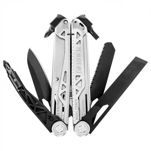 Gerber® Dual-Force™ nem egy átlagos multifunkciós eszköz. A Gerber Dual Force Multi-Tool egyedülálló, réteges felépítésével kétszer akkora állkapocsszilárdságot és kétszer nagyobb erőt biztosít bármilyen feladat elvégzéséhez.