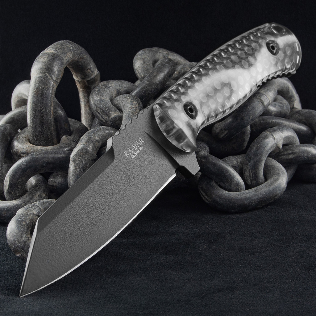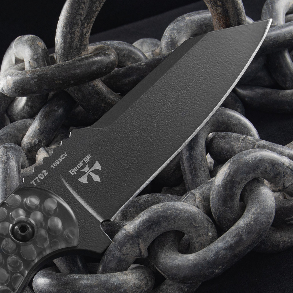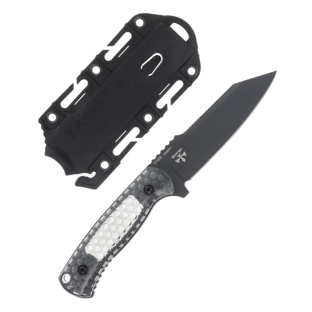 A modell pengéje 1095 Cro-Van széntartalmú acélból készül, amelyet a gyártó a tartósság és az ütésállóság miatt alkalmaz számos katonai és kültéri késében. A penge reverse tanto kialakítású, ami merevebb hegyet és jól irányítható vágóélt biztosít. Az él sima, a felület pedig fekete bevonatot kapott, amely csökkenti a fényvisszaverődést és növeli a korrózióállóságot. A markolat különleges „Smoke” polimer, amely részben áttetsző, így láthatóvá válik a full tang acélváz. Ez a konstrukció növeli a mechanikai stabilitást, különösen akkor, amikor a kés nagyobb nyomásnak vagy terhelésnek van kitéve. A késhez Celcon tok tartozik, amely biztos rögzítést kínál, és úgy lett kialakítva, hogy övre vagy felszerelésre is megfelelően illeszkedjen. A 7702 az Egyesült Államokban készül, a gyártótól megszokott tartóssági szemlélettel.