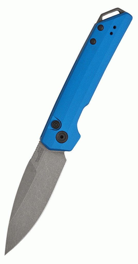 Ez a modell az automata nyitás kényelmét kínálja, amelyet a markolat oldalán található gomb vezérel. A button lock (gombzár) megbízhatóan rögzíti a pengét, legyen az nyitva vagy zárva, így használata biztonságos és egyszerű. A markolat anodizált alumíniumból készült, amely könnyű, mégis tartós, felülete kék színű, elegáns és modern hatást kelt. Az ergonomikus forma biztos fogást ad, miközben hosszabb használat közben is kényelmes marad. A hordozást mélyen ülő, kétoldalról áthelyezhető tip-up klip teszi praktikussá, amely mind jobb-, mind balkezesek számára ideális. A kés zárt állapotban mindössze 105 mm, így zsebben hordva szinte észrevétlen, de egyetlen mozdulattal előhívható, amikor szükség van rá.