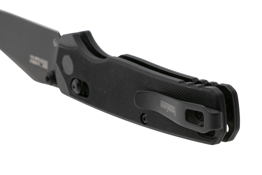 A kés pengéje CPM MagnaCut acélból készült, amelyet a gyártó kiemelt él-tartásával és korrózió-ellenállásával jellemez. A felület fekete PVD bevonattal van ellátva, amely vizuálisan visszafogott és fokozza a tartósságot. A penge stílusa clip point, sima élkiképzéssel („plain edge”), amely kiválóan alkalmas mindennapi vágási feladatokra és célszerű használatra. A markolat anyaga fekete G-10, közepesen texturált felülettel, amely biztos fogást kínál anélkül, hogy a fogás kényelmetlenné válna. A nyitás hüvelykujjas bütyökkel történik, a mechanika ball-bearing csapágyat tartalmaz, és a zár a robusztus DuraLock keresztzár, amely stabil rögzítést biztosít nyitott állapotban. A zsebklip deep-carry kialakítású, megfordítható jobb- és balkezes viseléshez is, így a hordhatóság is magas szintű.