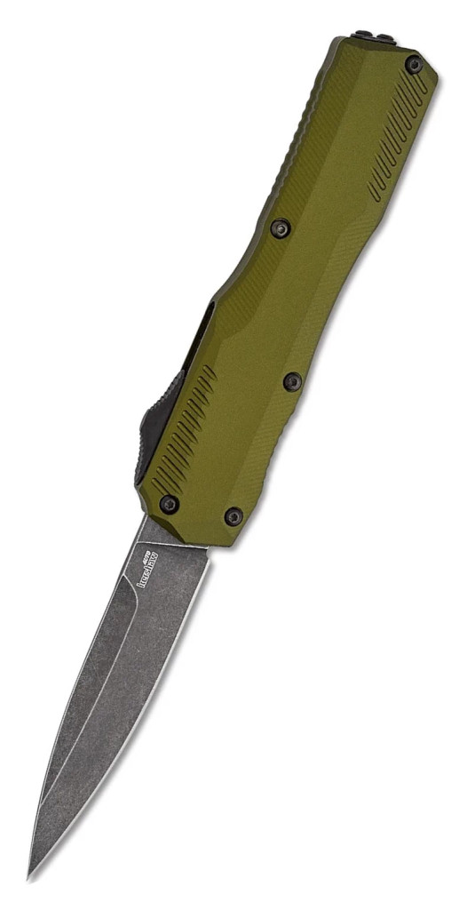 A Livewire pengéje CPM MagnaCut poracélból készül, amelyet a gyártó kiváló él-tartással, magas korrózió-állósággal és jó szívóssággal jellemez. A penge formája spear-point, sima éllel, ami jól irányítható hegypontot és hosszú, használható vágóélt biztosít. A penge hossza kb. 84 mm, vastagsága kb. 3,2 mm, így elég vékony a precíz szeleteléshez, de megfelelő merevséget ad az OTF szerkezethez. A penge felülete BlackWash / stonewashed, amely matt, kopást tűrő karaktert kölcsönöz, és segít elfedni a használat során keletkező karcokat. A markolat 6061-T6 alumínium, olívazöld eloxált kivitelben, amely könnyű, tartós és enyhén textúrázott felületével biztos fogást ad nedves vagy csúszós környezetben is. A nyitás és zárás OTF automata rendszerrel működik: a csúszókapcsoló egy kézzel előre-hátra mozgatja a pengét, így gyors, hatékony indítást tesz lehetővé. A konstrukció belső acél vezetősínekkel biztosítja a penge stabil mozgását. A kés deep-carry zsebklippel rendelkezik, amely jobb- és balkezes hordásra egyaránt átállítható, ezáltal a viselése diszkrét és kényelmes marad hosszabb időn át is.
