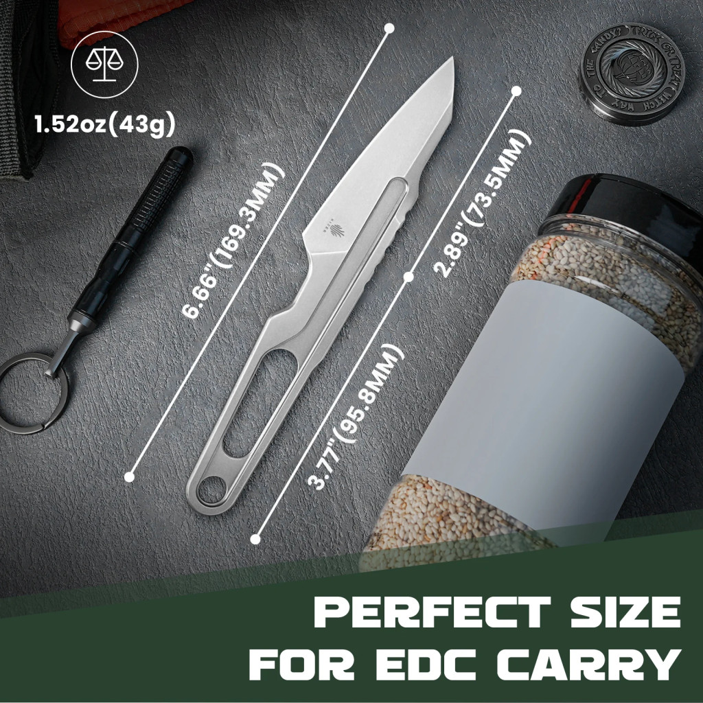 A Kizer Cobbler 1057A1 olyan felhasználóknak készült, akik egy masszív, teljes egészében fémből készült fixpengés kést keresnek. A clip point pengeforma kiválóan alkalmas precíz vágási és szúrási feladatokra, míg a D2 acél biztosítja a tartósságot és a hosszú éltartást. A stonewashed felület diszkrét, matt megjelenést ad, amely elrejti a karcolásokat. Ez a kés tökéletes választás mindennapi hordásra, könnyebb szabadtéri feladatokra, valamint gyűjtőknek, akik értékelik az acél penge és acél markolat kombinációjának minimalista, ipari jellegét.