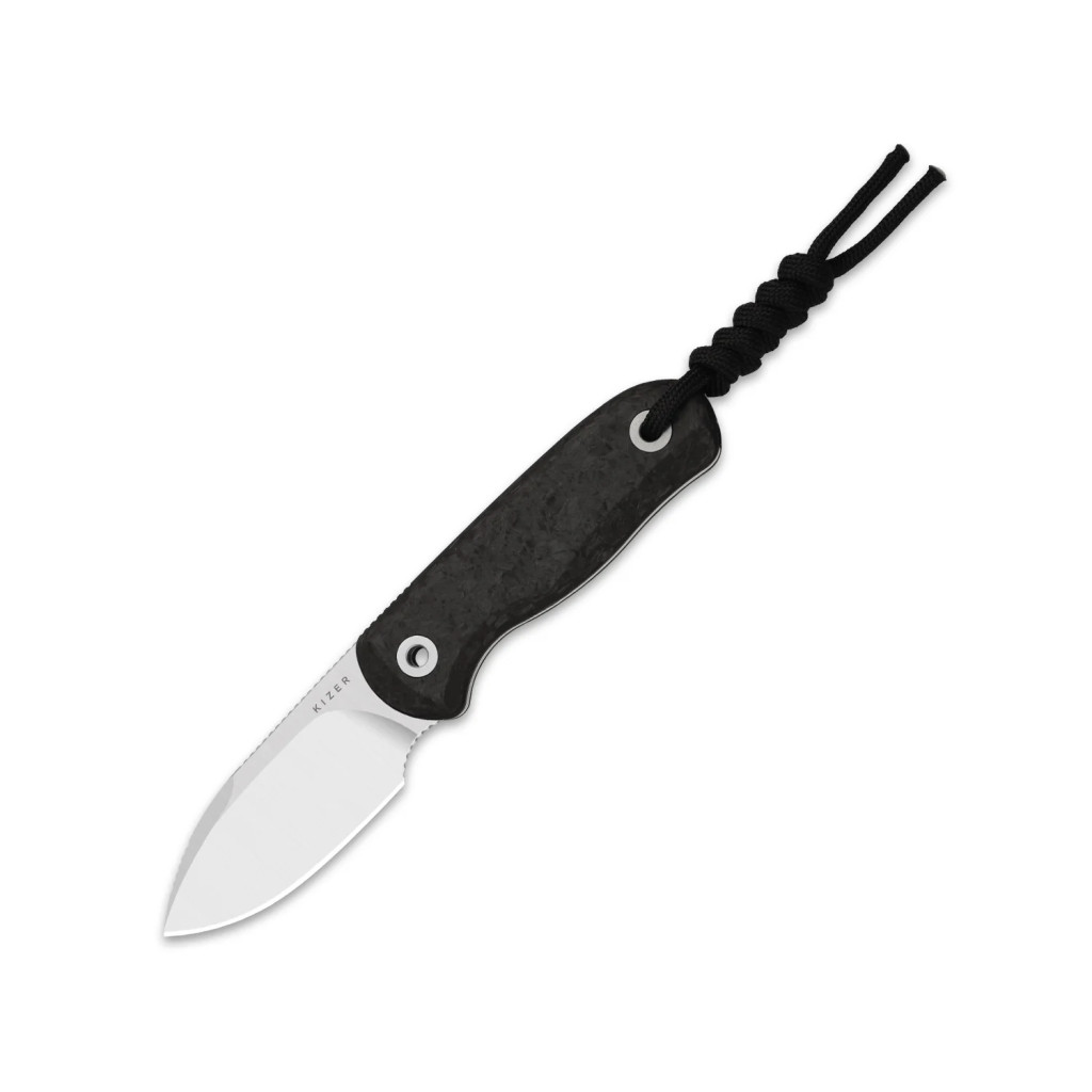 A kés teljes hossza 152,50 mm, a penge hossza 65,20 mm, és a penge vastagsága 3,0 mm. A markolat hossza 87,30 mm, a tömeg pedig 71,6 g, ami rendkívül könnyű fixpengés konstrukcióként — így a hordás minimális terhet jelent. A penge felülete satin finish (selyemfényű polírozás), amely letisztult megjelenést ad és csökkenti a fényvisszaverődést; a keménység HRC 59-60, amely a tartósság és élezhetőség egészséges arányát kínálja. A pengeforma drop point, a markolat anyaga karbonszálas kompozit, amely garantálja a stabil fogást még hosszabb használat során is. A tok kialakítása révén a kés biztonságosan hordható övön vagy felszerelésen — készen áll a mindennapi és szabadtéri feladatokra.