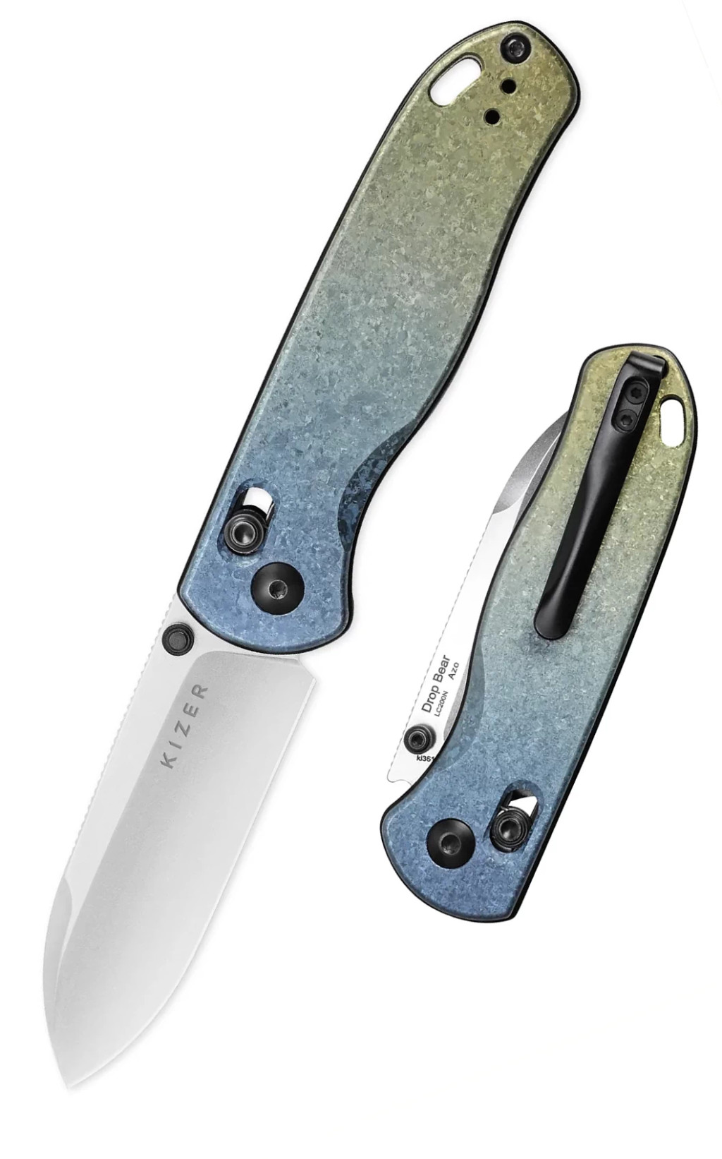 A kések specifikációi szerint a teljes hossz kb. 182 mm, amely könnyed zsebbeli méretet biztosít, mégis használható marad. A penge hossza kb. 76 mm, vastagsága kb. 2,8 mm, ami a magas minőségű LC200N acéllal együtt stabil vágó- és hordhatósági kompromisszumot jelent. A markolat hossza kb. 106 mm, anyaga titán-ötvözet; a felület különleges mintázatot kapott oxidációval, amely nem csak megjelenésben, hanem fogásban is karakteres. A kés tömege kb. 120 g, ami nagyon kedvező hordhatóságnál — használat közben stabil érzetet ad, de nem nehezíti el a zsebben viselést. A zármechanizmus Clutch Lock típusú, amely biztonságos rögzítést és megbízható működést kínál, a klip deep-carry kivitelű és megfordítható jobb- illetve balkezes hordáshoz. A markolat titán-ötvözetének oxidációs felülete vizuálisan egyedi, de konstrukciója a mindennapi használatra is kész.