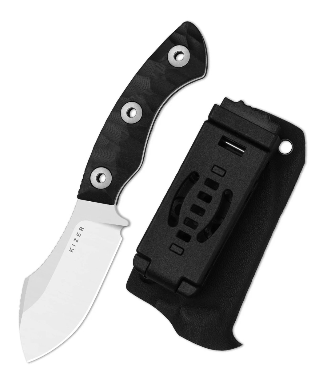 A kés teljes hossza 172,6 mm, a penge hossza 78,9 mm, vastagsága 3,0 mm, a markolat hossza 93,7 mm, és a tömeg 93,4 g. A penge felülete satin finish (selyemfényű polírozás), ami elegáns és karcálló megjelenést biztosít. A keménysége HRC 58-60, amely a tartósság és élmegtartás egyensúlyát képviseli. A pengeforma Nessmuk-style, amely a klasszikus drop-point továbbfejlesztett változata: mély hasív, kontrollált vágóél és stabil hegy — így mindennapi használatra és outdoor feladatokra is kiváló. A markolat anyaga G10, amely rendkívül tartós és biztos fogást nyújt, még olyan környezetben is, ahol a kezek nedvesek vagy hidegek. A tok kydex, amely biztonságos és gyors hozzáférést tesz lehetővé a késsel.