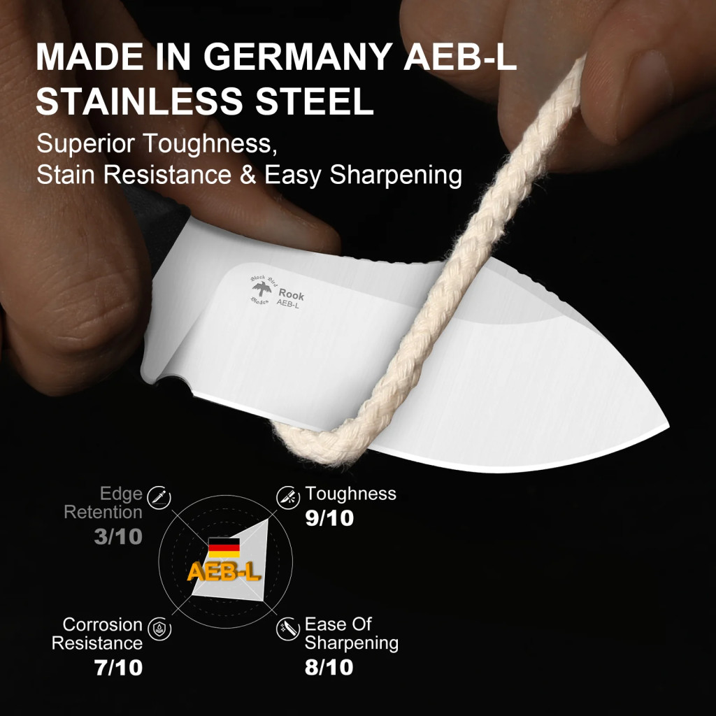 A Rook ideális választás mindazoknak, akik egy kompakt, de prémium felépítésű fixpengés kést keresnek – akár városi mindennapi hordásra (EDC), akár outdoor-túrákra, kempingezéshez vagy táborkésként. A Nessmuk-forma és az AEB-L acél kombinációja kiválóan használható vágásra, metszésre és kisebb faragási feladatokra is. A G10 markolat és full-tang konstrukció biztos fogást és tartósságot ad hosszú használat során is. A kydex tok révén a hordás egyszerű és biztonságos – akár övön, hátizsákon vagy outdoor felszerelésen. Akik értékelik a részletekre való odafigyelést, a minőségi anyagokat és a kifinomult dizájnt, azoknak a Rook modell tartós és elegáns használati tárgyként is megállja a helyét.