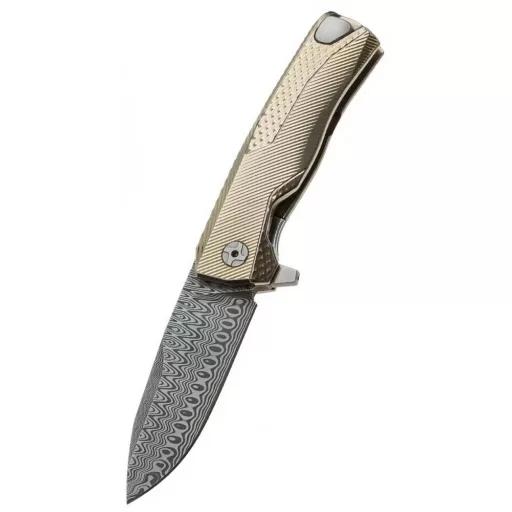 A kés titán markolatában található a framelock zárszerkezet melyhez Rotoblock biztonsági szerzkezet tartozik mely megakadályozza a vétlen nyitást / zárást. Penge acélja rozsdamentes damask - damasteel.