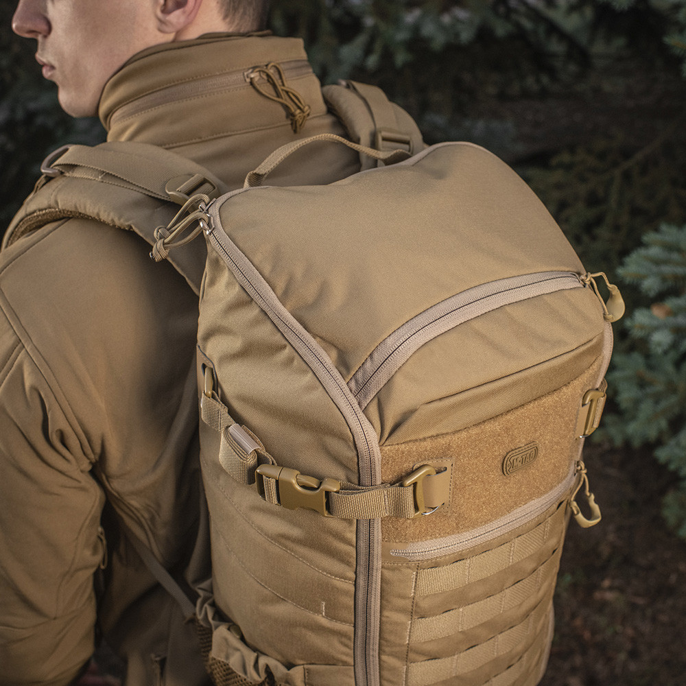 Ez a modell a strapabíró Cordura 500D anyagnak, valamint a minőségi YKK cipzároknak, WJ műanyag csatoknak és MIL-SPEC zsinóroknak köszönhetően kimagaslóan ellenálló. A hátizsák különlegessége a bőröndös nyitás, amely leegyszerűsíti a pakolást és a pakliátláthatást, a belső fedélen pedig Velcro panel is található moduláris elemekhez. Oldalt elasztikus hálós zsebek húzódókötelekkel, felül pakolós rekesz, elöl pedig MOLLE csatolófelület található. A hátizsák alsó részén kompressziós pánthurkok is helyet kaptak a terhelés optimalizálására. Ezek a részletek együtt még funkcionálisabbá és felhasználóbarátabbá teszik ezt az eszközt.