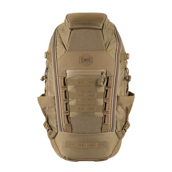 A hátizsák anyaga Cordura 500D és Cordura Hex 1000D, amelyek kiemelkedő szilárdságot és kopásállóságot nyújtanak. A Cordura 1000D szakítószilárdsága közel 3000 N, kopásállósága meghaladja az 50 000 ciklust, ami különösen hosszú élettartamot biztosít. A hátizsák MOLLE Laser Cut felületei elöl és oldalt találhatók, így a kapacitás könnyen bővíthető további modulokkal. A hátpanel párnázott és szellőző kivitelű, az ergonomikus vállpántok állíthatók, a stabilitást pedig egy mellheveder segíti. A fő rekeszben rendszerező zsebek és kivezetés található ivótasakhoz. A méretei 51 × 28 × 17 cm, űrtartalma 36 liter, amely kompakt, de sokoldalú pakolást tesz lehetővé. A táskát YKK cipzárak és Woojin ACETAL csatok egészítik ki, melyek vízállóságot, kopásállóságot és tartósságot kínálnak. Ezek az elemek biztosítják, hogy a táska mind városi, mind terepi használat során hosszú távon is megbízható maradjon.