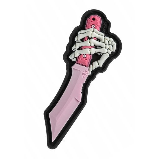 A patch anyaga PVC (polivinil-klorid) — ez egy ellenálló, időjárás- és kopásálló szintetikus anyag, amely tartós marad még intenzív használat mellett is. A patch felülete texturált, élénk középtónusú részletekkel, amelyek kiemelik a kés formavilágát: a penge kontúrját, a markolat vonalait és a minimalista „skeleton” struktúrát. A PVC anyag rugalmassága és tartóssága miatt a patch könnyen rögzíthető velcro (hurkos) felületekre, vagy varrással ruházatra, taktikai felszerelésre, sapkára, hátizsákra, mellényre, övre stb. A kialakítása kompakt, de határozott — ez a patch nem hivalkodó, mégis karakteres vizuális üzenetet hordoz.