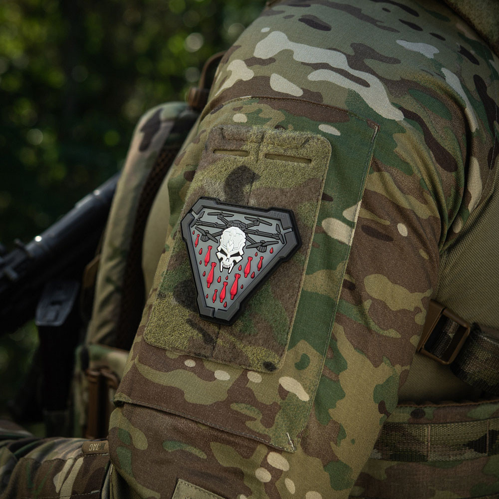 A patch anyaga PVC (polivinil-klorid), amely időjárás-, kopás- és hőálló, így kültéri használatra is kiválóan alkalmas. A vámpír-jelképet ábrázoló grafika precízen kidolgozott, élénk színekkel és határozott kontúrokkal jelenik meg, amely vizuálisan erős hatást kelt. A PVC felület textúrája tartós és rugalmas, így nem gyűrődik, nem tépődik és nem fakul könnyen a használat során. A patch hátoldalán található horog-rész (hook) egyszerű és gyors felhelyezést tesz lehetővé bármilyen hurkos (loop) PVC felületre, például taktikai mellényre, hátizsákra, sapkára vagy kabátra, de ha a helyzet úgy kívánja, akár varrással is véglegesen rögzíthető.