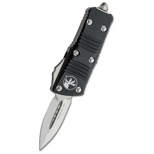 MICROTECH Mini Troodon D/E Satin OTF rugós bicska a normál Troodon méretének a töredéke. Karcsú kialakításával, könnyebben használható működési mechanizmussal és "három ujjas" kivitelének köszönhetően szélesebb közönséget szolgál ki. Még elég kicsi ahhoz, hogy pénzcsipeszként funkcionáljon, de kialakítása révén akár teljes értékű Microtech OTF-ként is működhet.