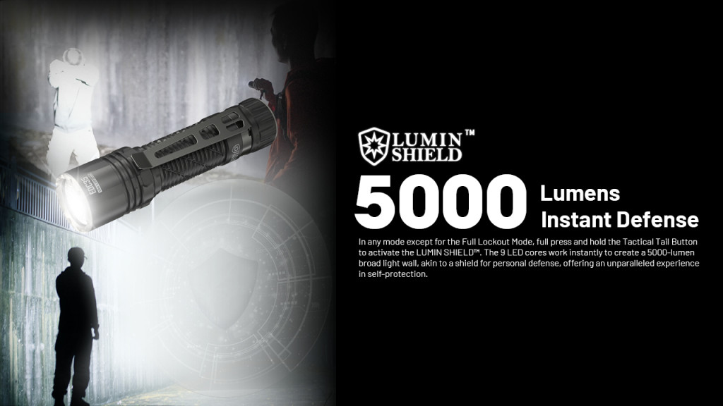A lámpa középpontjában egy nagy teljesítményű, 9 szegmenses UHi 40 MAX LED áll, amelynek köszönhetően a fényhatótáv elérheti az akár 550 métert is — ez azt jelenti, hogy hosszabb távra történő világításnál is megbízható és fókuszált fényt kapsz. A többféle fényerő-szint (Ultra alacsony, alacsony, közepes, magas) mellett speciális „SEARCH” és „Lumin Shield™” módok is rendelkezésre állnak, amelyekkel könnyedén igazíthatod a fényt az adott feladathoz vagy környezethez.