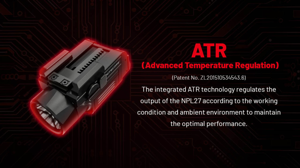 A Nitecore NPL27 Glock és Picatinny (MIL-STD-1913) sínre is felszerelhető a tartozék adapter segítségével. A flexibilis, állítható rögzítőrendszernek köszönhetően számos maroklőfegyverrel kompatibilis, a visszarúgásbiztos kialakítás pedig garantálja a stabil működést sorozatlövés és erős rezgés mellett is.