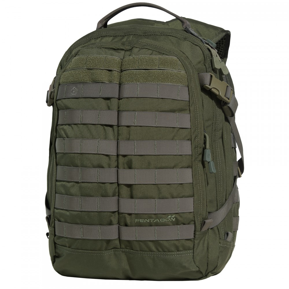 Két lapos oldalzseb; MOLLE/PALS hurkok elöl, oldalt és a pántokon; kompressziós hevederek; ID-tépőzár; vízelvezető nyílás.