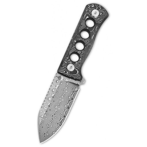 QSP KNIFE Canary Damascus Aluminium Foil Carbon Fiber kés pengéje lenyügöző damaszk acélból készült. Markolata egy speciális carbon fíber melynek rostjai között aluminium fólia réteg található, hogy még szebb és még különlegesebb legyen. A késhez egy carbon fiber mintázatú kydex tokot adunk és ezüst színű golyó láncot, hogy könnyedén magaddal vihesd bárhová.