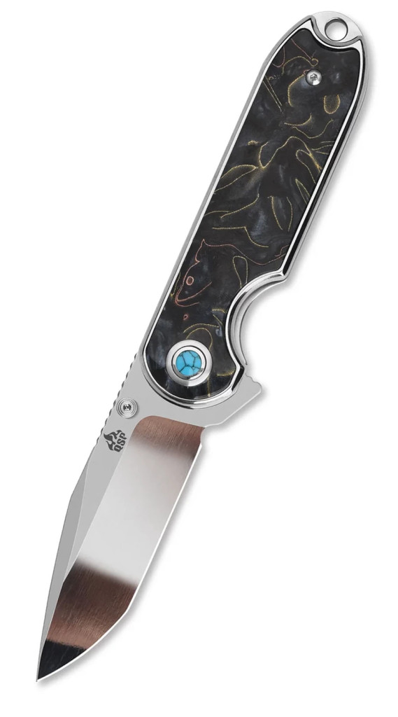 A QSP Nebula pengéje 14C28N rozsdamentes acél, amely jó él-tartást, korrózióállóságot és könnyen karbantartható tulajdonságokat kínál, így mindennapi használatra kifejezetten alkalmas. A penge formája clip point, sima élkiképzéssel, ami kiegyensúlyozott vágóél-használhatóságot és precízen irányítható hegypontot biztosít. A felület tükörpolírozott, amely nemcsak elegáns megjelenést ad, hanem kiemeli a penge tiszta csiszolási vonalait is. A markolat a modell legkülönlegesebb része: brass/copper mesh resin kompozit, amely gyanta és finom réz-, illetve sárgaréz-szövetrétegek keverésével készül. Ennek köszönhetően minden egyes Nebula egyedi mintázatú és színeloszlású darab, így nincs két teljesen egyforma kés. A markolat formája ergonomikus és kézre simuló, a felülete pedig meglepően jó tapadást biztosít annak ellenére, hogy vizuálisan inkább elegáns hatású. A penge nyitása flipperfüllel vagy hüvelykujj-studdal lehetséges, a mozgást golyóscsapágyas pivot teszi simává és gyorssá. A zármechanika liner lock, amely stabil, szilárd nyitott pozíciót garantál használat közben. A zsebklip tip-up pozíciójú, és diszkrét hordást tesz lehetővé anélkül, hogy a markolat különleges mintázatát eltakarja.