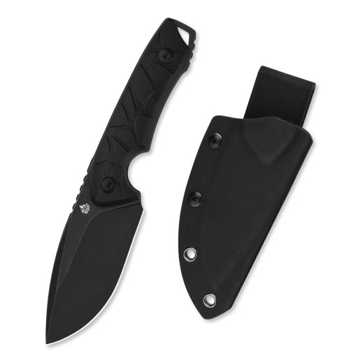 A kés pengéje 10Cr15MoV rozsdamentes acél, amely jellemzően kedvelt egyensúlyt kínál él-tartás, korrózió-állóság és viszonylag könnyű karbantarthatóság tekintetében. A penge hossza 89 mm, vastagsága 4,2 mm. A penge formája drop point, sima élkiképzéssel (plain edge), ami sokoldalú és praktikus: a penge hegye erős, vágóéle stabil, így alkalmas szeletelésre, faragásra, előkészítésre vagy hétköznapi vágási feladatokra is. A markolat fekete G10, amely strapabíró, kopás- és időjárásálló, továbbá textúrája miatt jó tapadást ad — még nedves vagy szennyezett kézben is biztos fogást. A kés teljes tang konstrukcióval készült — az acél pengét tangban végighúzódó nyélrész erős, merev felépítést ad, így az eszköz nemcsak kompakt, hanem tartós is.