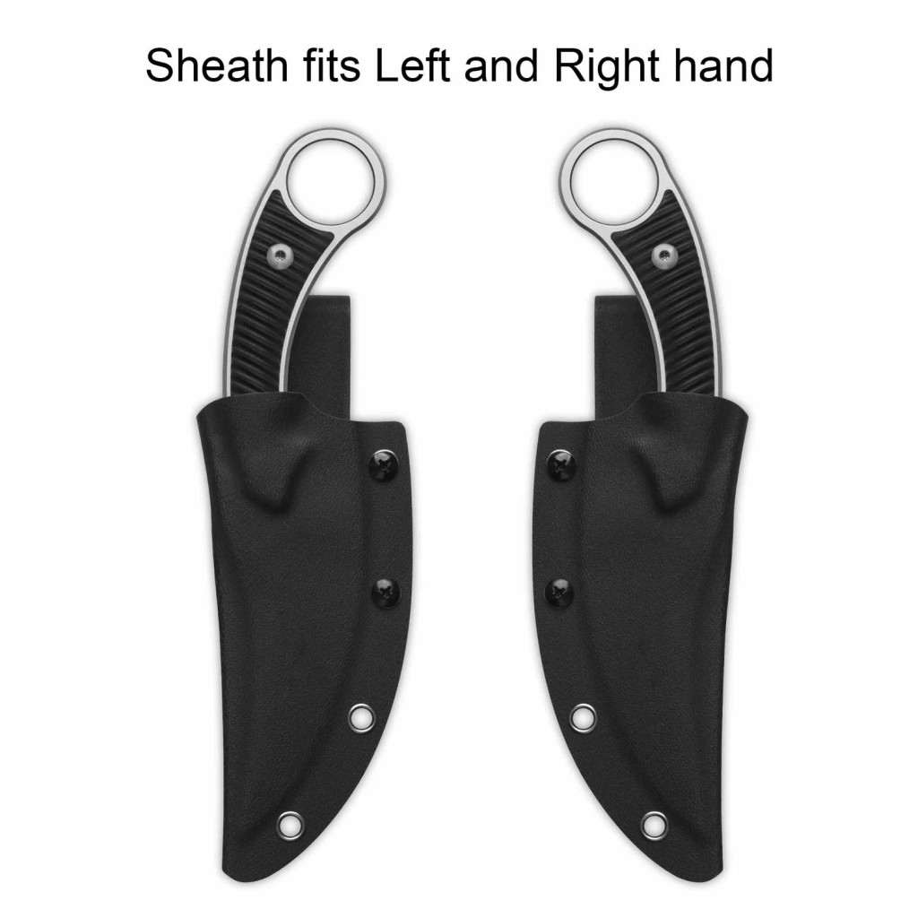 A kés pengéje 10Cr15MoV rozsdamentes acélból készült — ez az acélfajta kedvelt kompromisszumos választás: elfogadható él-tartás, jó korrózió-ellenállás és viszonylag egyszerű karbantarthatóság jellemzi. A penge formája clip-point / trailing-point-közeli, sima élkiképzéssel („plain edge”), ami előrefelé stabil hegypontot és hátrafelé jól kontrollált vágóélet biztosít — így a kés sokoldalú. A penge hossza 100 mm, vastagsága 4,5 mm, ami masszív, merev pengetestet ad — ez különösen értékes olyan feladatoknál, amikor stabil vágás vagy faragás szükséges. A markolat fekete G10, amely strapabíró, kopás- és időjárásálló anyag, továbbá olyan textúrázott felületet ad, amely még nedves vagy csúszós kézben is biztos fogást nyújt. A teljes tang konstrukció azt jelenti, hogy a penge anyaga végigfut a markolatban, így a kés merevsége és tartóssága növekszik — nem csupán könnyű, de robusztus is.