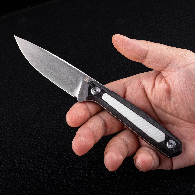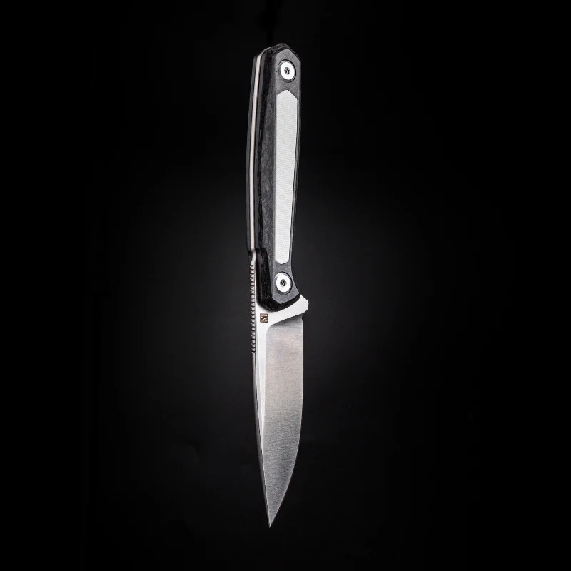 A penge M390 poracélból ("martenzites rozsdamentes acél", amely kiemelkedő kopásállóságot, szívósságot és élmegtartást kínál). A penge vastagsága 3,3 mm, vágóhossza 80 mm. A markolat hibrid kialakítású: G-10 kompozit a külső felületen – üvegszállal erősített műgyanta, amely könnyű és biztos fogást ad, továbbá karbonszálas betét, amely masszív, mégis elegáns megjelenést biztosít. A kés full tang, vagyis a penge szerkezete végigfut a markolatban, maximális stabilitást ad. Az ergonómiát a lekerekített gerinc ("rounded spine") tovább fokozza. Ez a modell igazi munkaeszköz, amely egyszerre vizuálisan letisztult és rendkívül strapabíró.