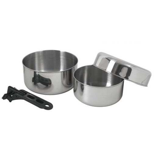 A turista edénykészlet három önmagában is használható edényből, valamint mindháromhoz kompatibilis edényfogóból áll.